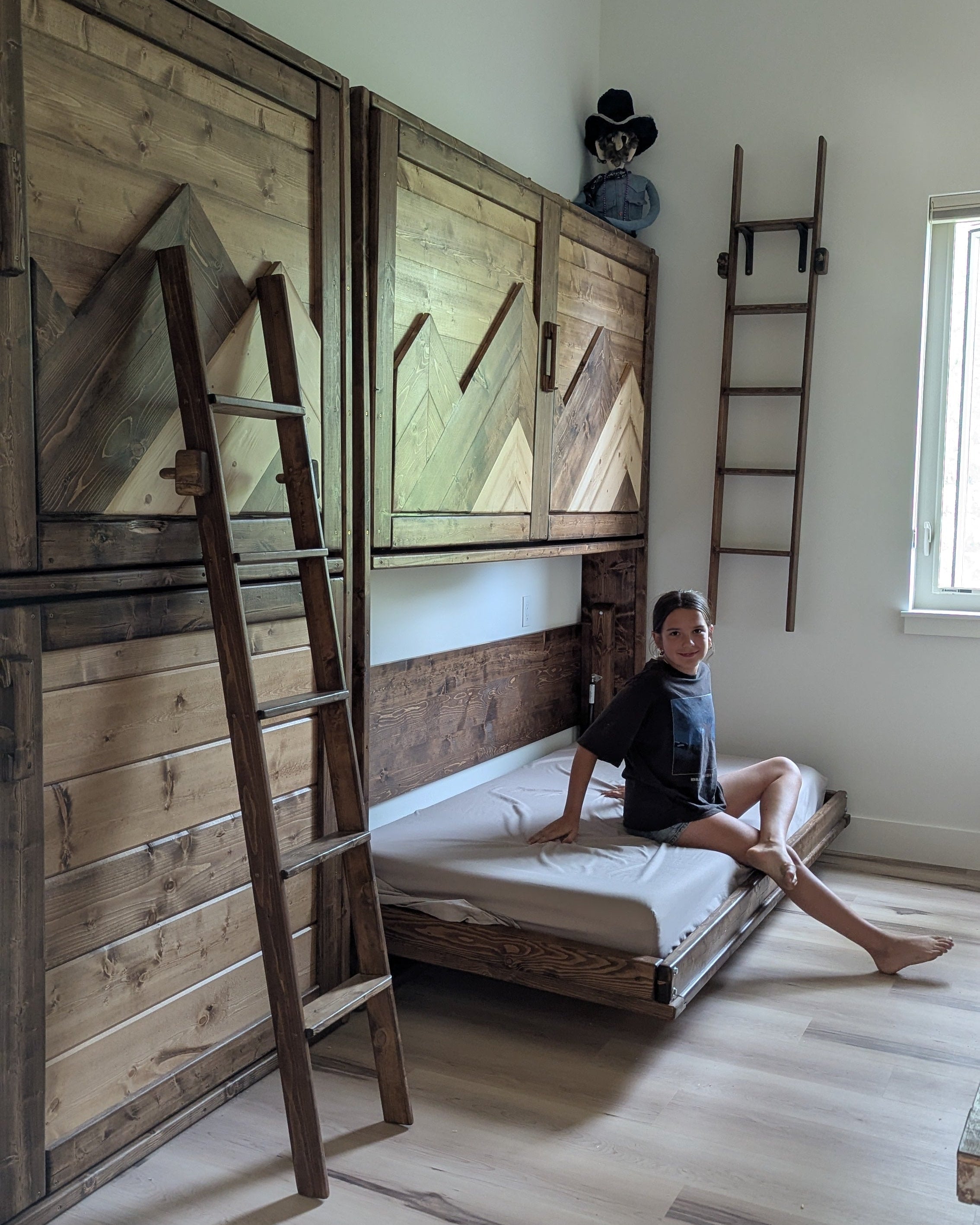 Discover the ultimate space-saving solution for your kids' & grandkids room with our handmade solid wood Murphy bunk beds.